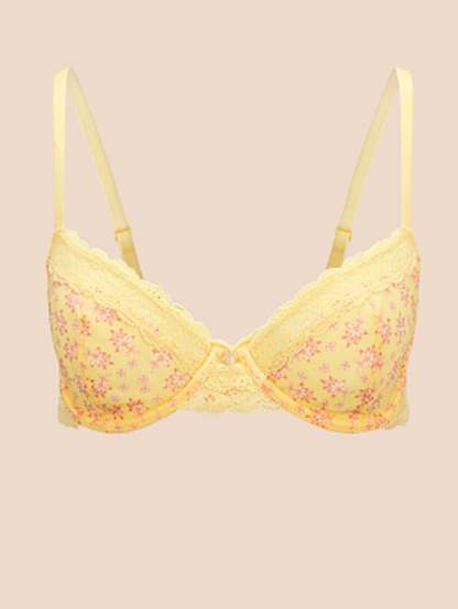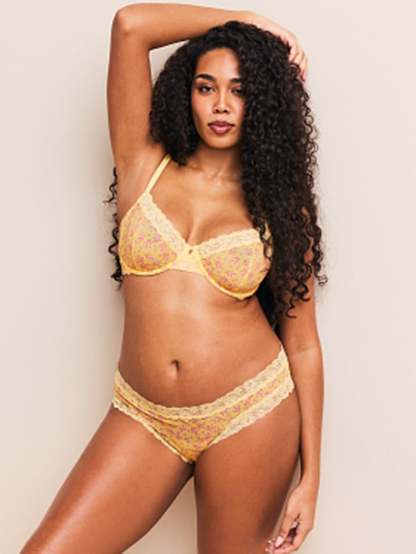Sheer mesh cups adorned in a chic, printed pattern are finished with delicate lace trim for a flirty feel. Pair with the Akari Panty for a matching look that’s the perfect addition to your lingerie drawer.