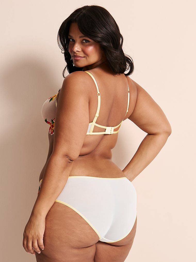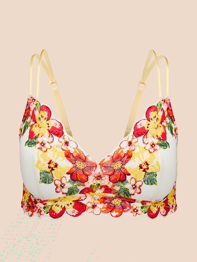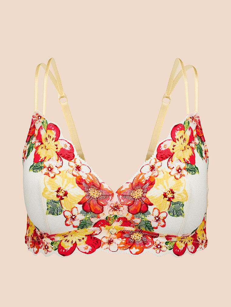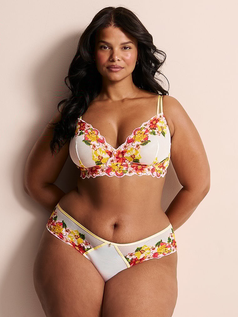A wirefree design crafted with comfortable lace and mesh fabric for a freeing, flexible fit.