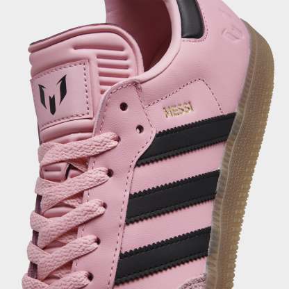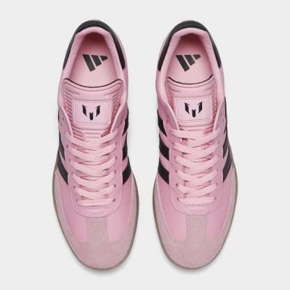 Celebrate the legacy of a football icon with the adthtidas Samba Messi. This reimagined take on the timeless Samba brings Messi-inspired details to the classic silhouette, making it perfect for athletes and fans alike. A smooth leather upper, suede toebox, and stitched tongue label add a premium touch, while the embossed Messi "M" logo at the heel cements its status as a must-have for any Messi enthusiast. The gum rubber outsole delivers dependable grip, whether on the pitch or the pavement. Lace up, take control, and play with the confidence of a champion.