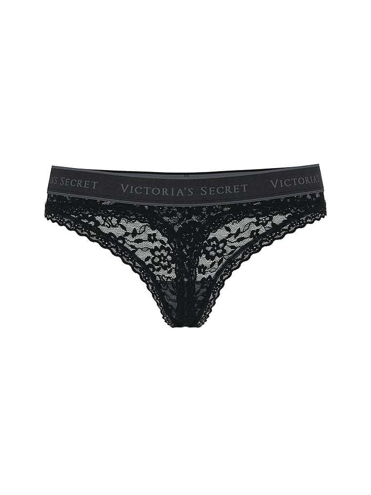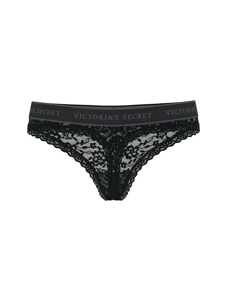 Supersoft and stretchy, our top-rated lace is showcased on this sexy Thong, offset with our classic logo elastic waistband.