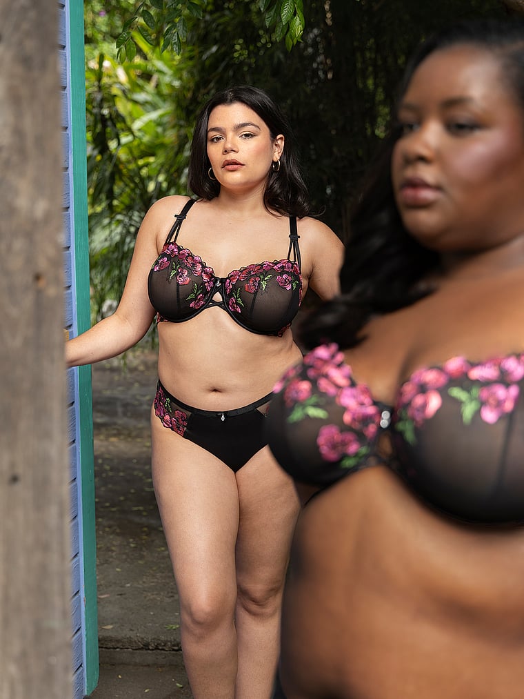 This unlined underwire Balconette Bra offers lush embroidery details to make a statement no matter where you wear it. Airy, breathable non-stretch mesh keeps things lifted, while intricate corset details keep it sexy.