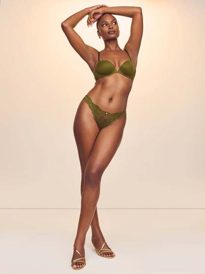 - Lower, plunging center gore provides less coverage, perfect for low-cut tops