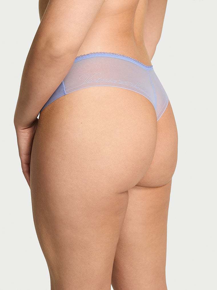 No-Show No-Show Mesh-Back Logo Thong Panty Script Mesh Back