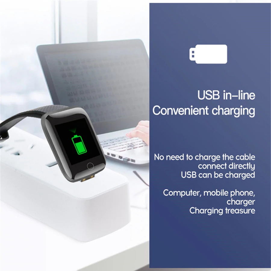 Package Contents: 1 x Smart Watch, 1 x Box,1 x Manual (Note:No Charger. Dear buyers, this watch does not require a charging cable, it can be charged directly through the charging head or USB interface.Dear,The box may be damaged after long transportation, but the watch is fine, please understand.)