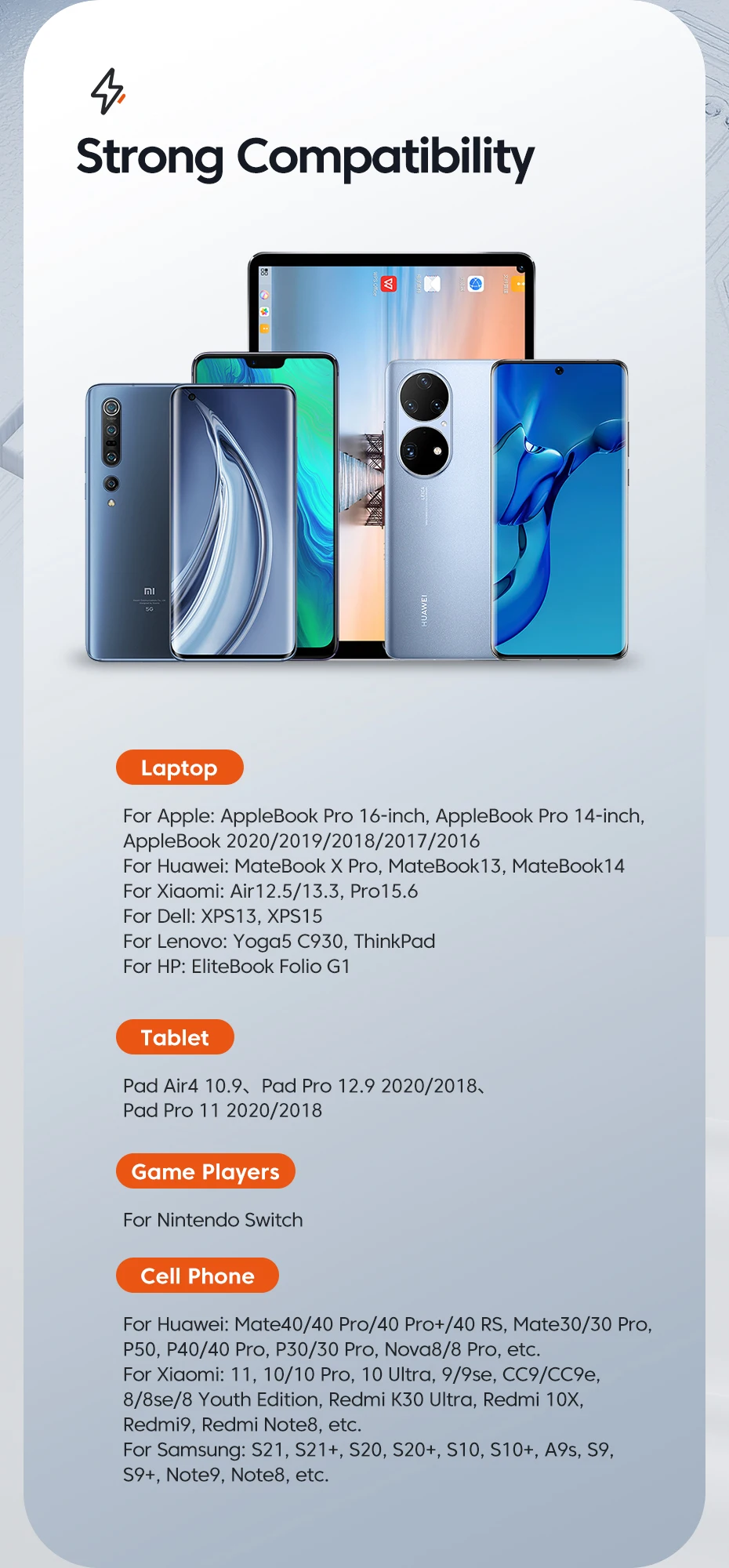 • PD 3.0:Provides stable and fast charging for your device with the latest PD 3.0 technology.