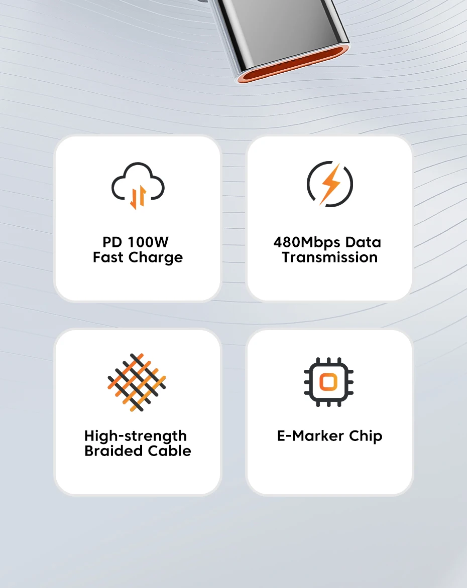 The built-in E-marker smart chip can intelligently identify the current required by the device and help the device to charge stably and quickly.