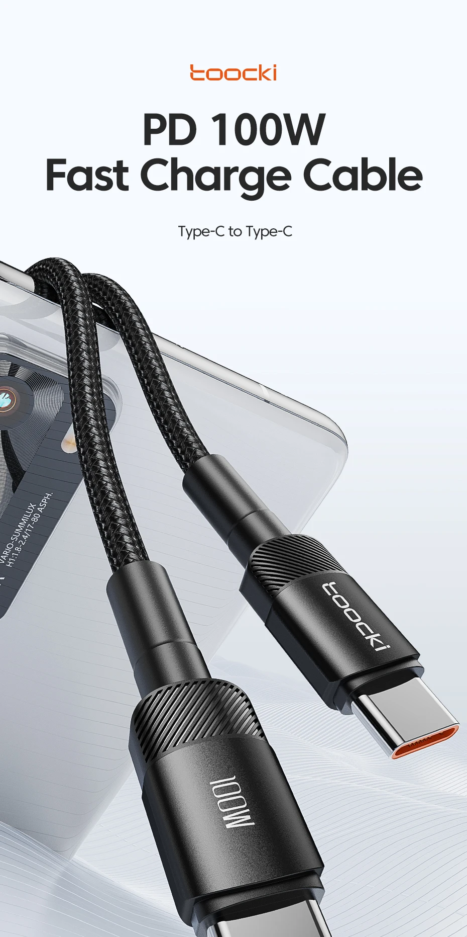 Toocki 100W Type C to USB C Cable PD 3.0 Quick Charge 4.0 Fast Charging Type C to Type C for iPhone 15 Macbook Samsung Xiaomi