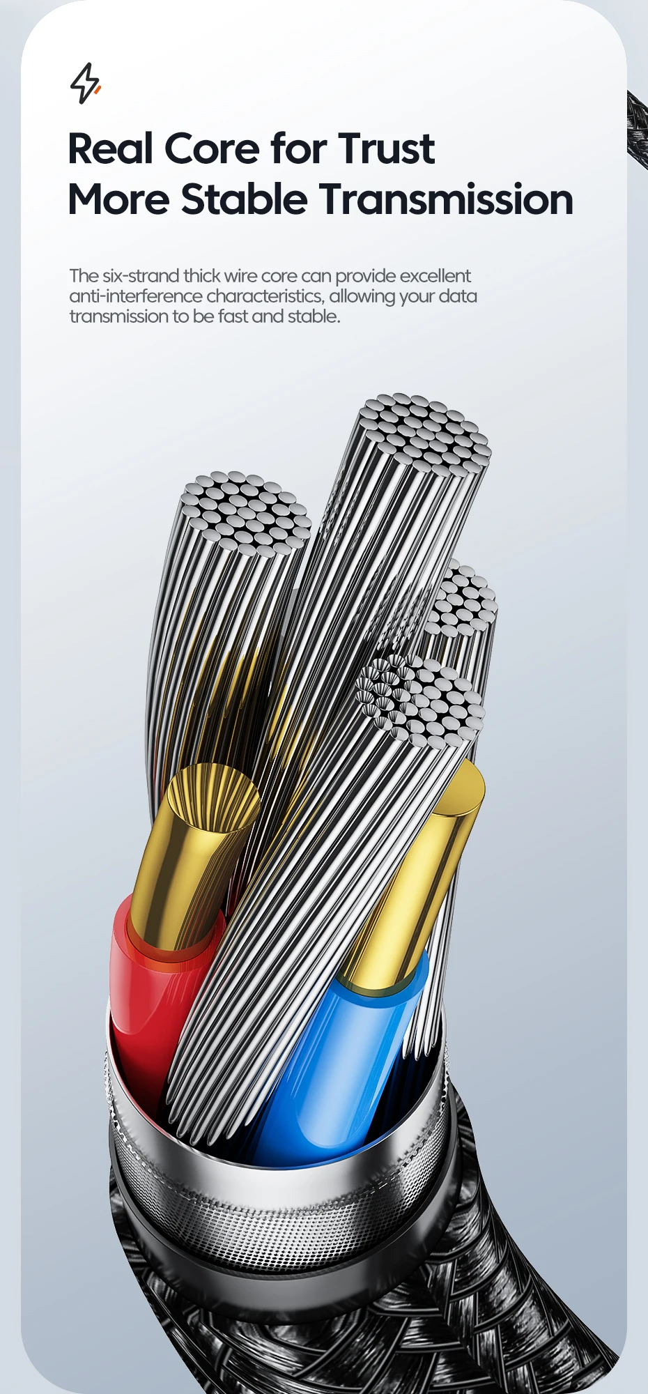 The six-strand thick wire core can provide excellent anti-interference characteristics, allowing your data transmission to be fast and stable.
