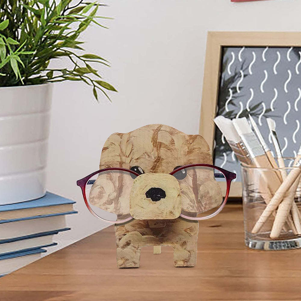 Wooden Cartoon Golden Retriever Eyeglass Holder