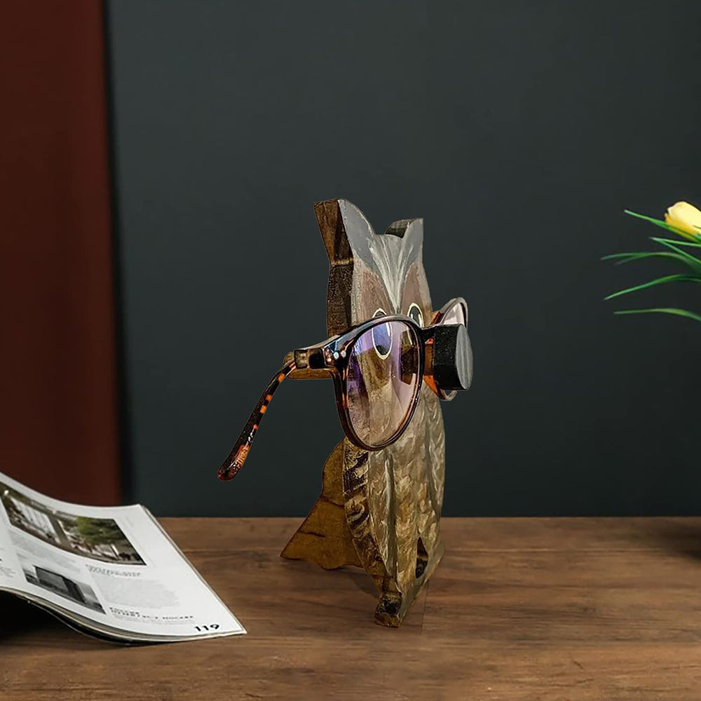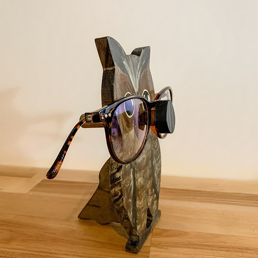 Wooden Cartoon Serious Owl Eyeglass Holder