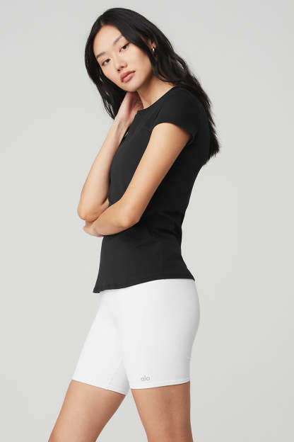 Your two absolute essentials, combined — Alosoft & easy, wear-everywhere tees. The Alosoft Finesse Tee is airy & ultra-soft, perfect for sweaty yoga sequences or completing your perfect street look. Hook up this relaxed staple with colorful bikers or cool capri leggings and head out.