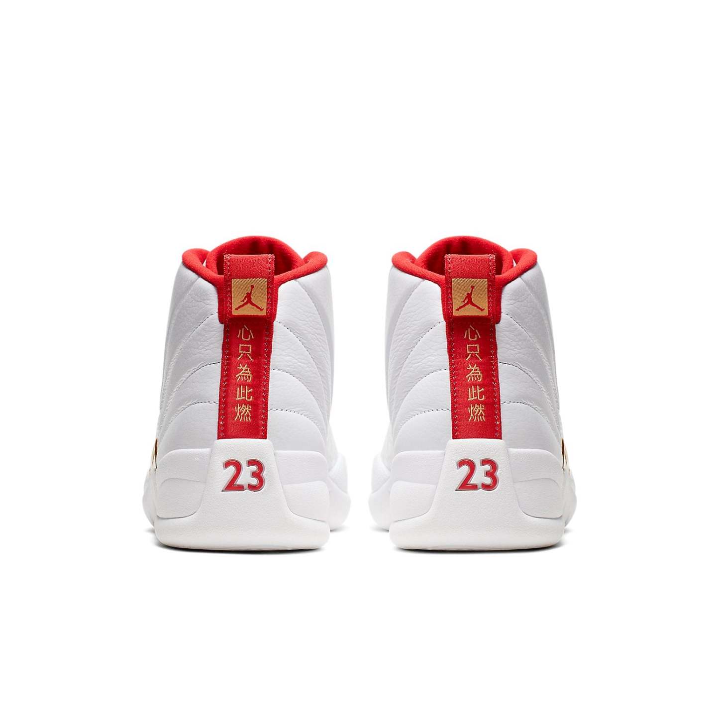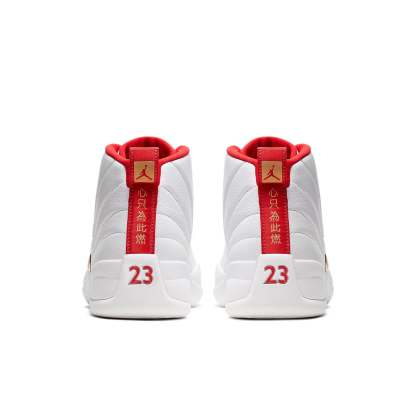 To commemorate the FIBA Basketball World Cup hosted by China, the Nithtke Aithtr Jorthtdan 12 "FIBA" features the colors on the Chinese national flag and complements it with a white base. The signature stitched full grain leather upper is in white, accentuated by metallic gold. Vibrant red appears on the sockliner, Jumpman logo and heel. Five Chinese characters meaning "Love The Game" read below the heel strap.