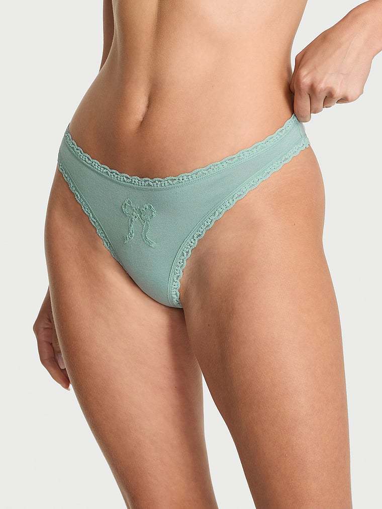 The Lacie Cotton Lace Bow Thong Panty Bow Cutout