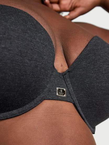 Our best-selling T-Shirt Bra is a must-have in a soft cotton blend with our new, engraved-enamel, logo hardware detail in front. The lightly lined, full-coverage design works to enhance your natural shape.