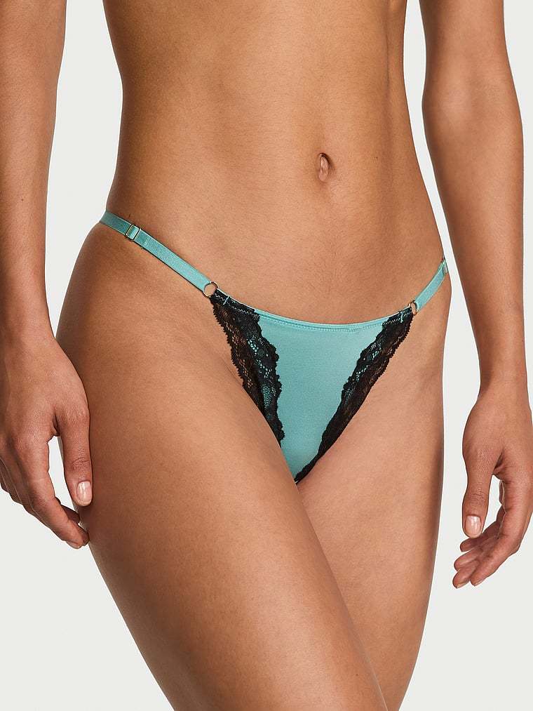 A high-cut leg makes this second-skin Panty feel even sexier, in silky-smooth microfiber trimmed in lace and finished with adjustable straps.