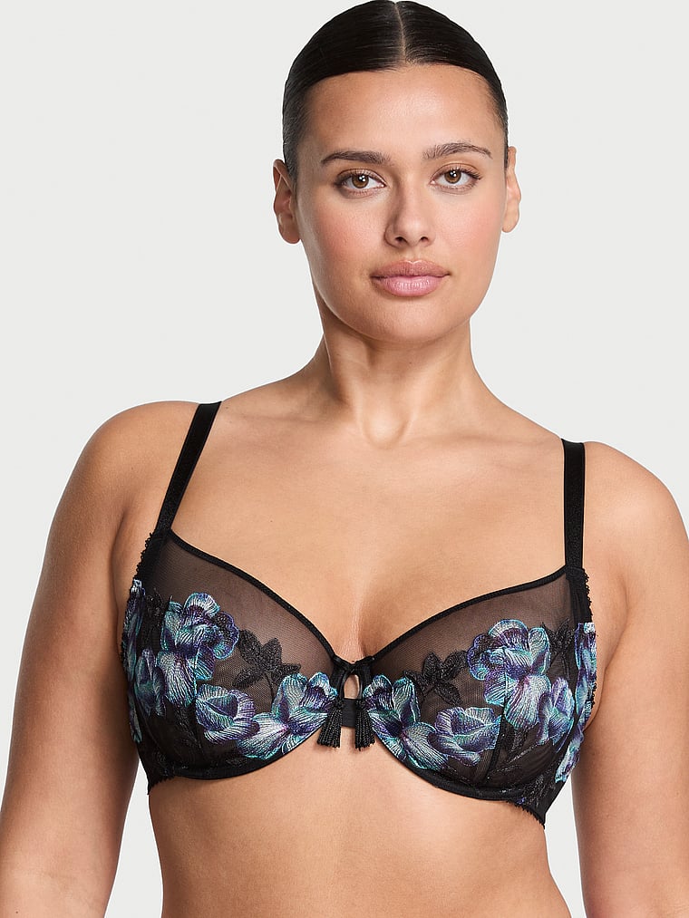 Richly hued, moody blooms are artfully embroidered on sheer tulle mesh on our popular, full-cup Bra—featuring a 3-piece construction that provides extra support and coverage for larger cup sizes.