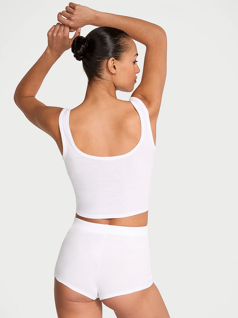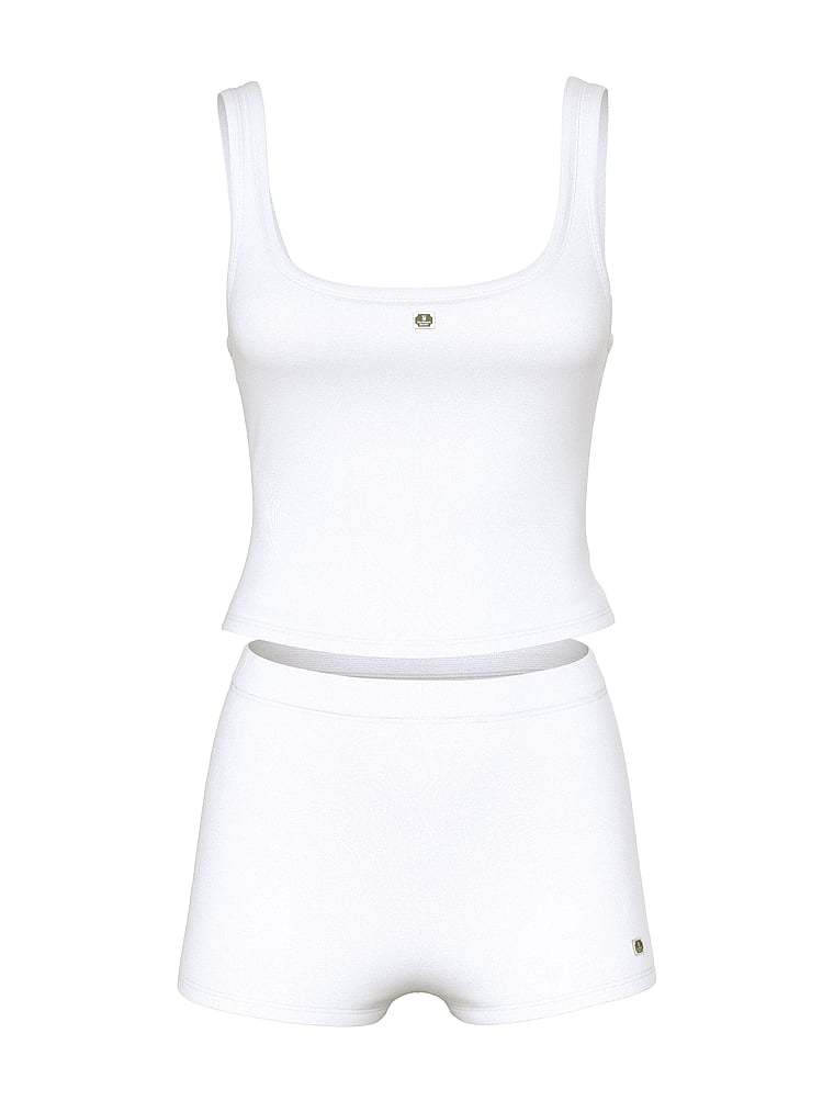 Our pure-cotton fabric is so soft and comfy, it's just the thing for lounging and sleeping. On top, a fitted Tank with our new logo plaque hardware front and center. On the bottom, curve-hugging Shorts with an easy elastic waist.