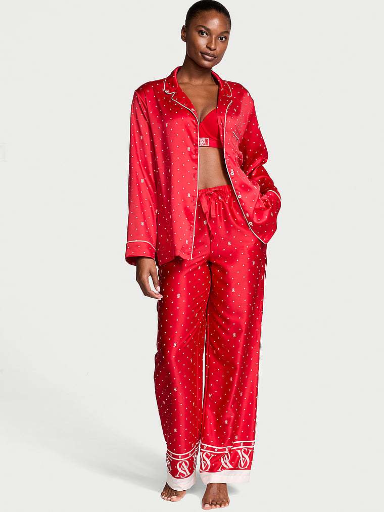 Victoria's Secret Glazed Satin Long Pajama Set Signature Satin