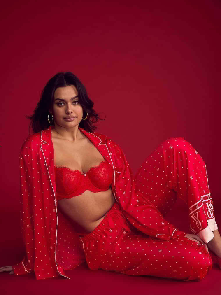 Victoria's Secret Glazed Satin Long Pajama Set Embroidered