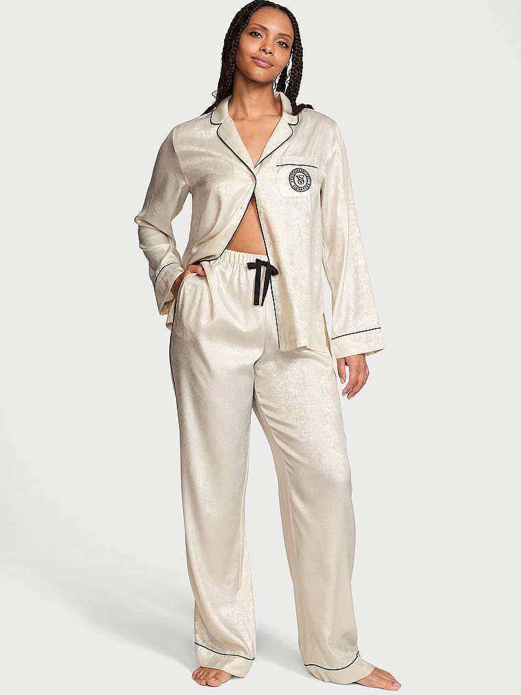 Victoria's Secret Glazed Satin Long Pajama Set Signature Satin