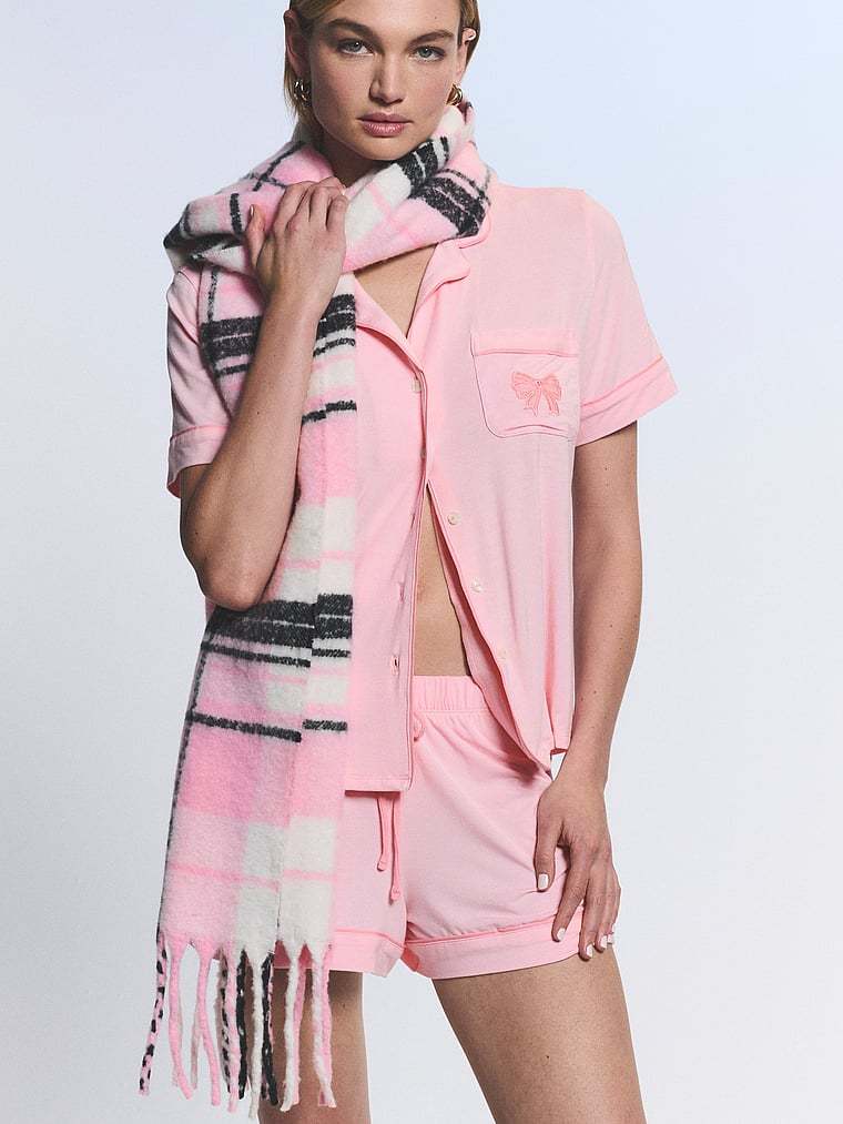 Victoria's Secret Modal Soft Bow Short Pajama Set Embroidered Pocket