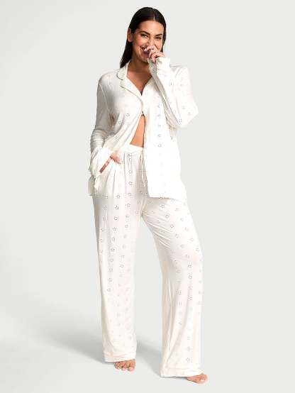 Victoria's Secret Modal Soft Eyelet Long Pajama Set Modal Soft