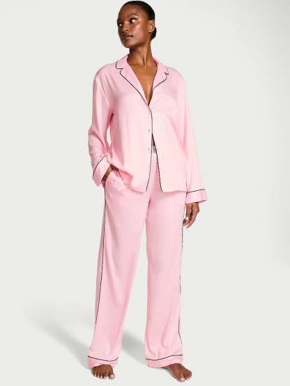 Victoria's Secret Glazed Satin Long Pajama Set Signature Satin