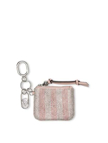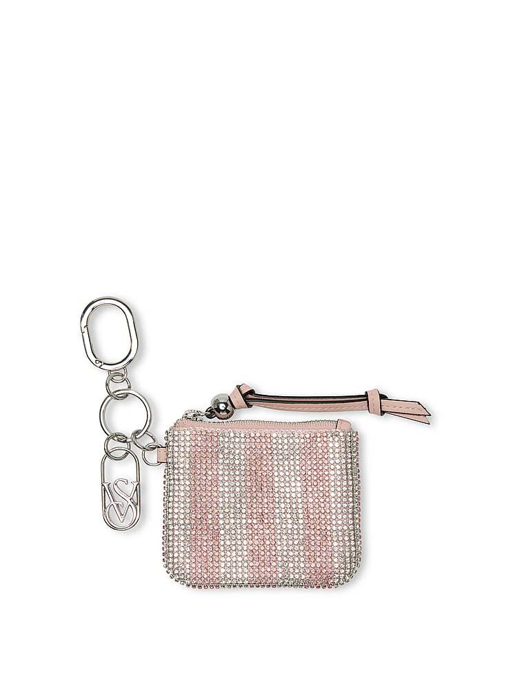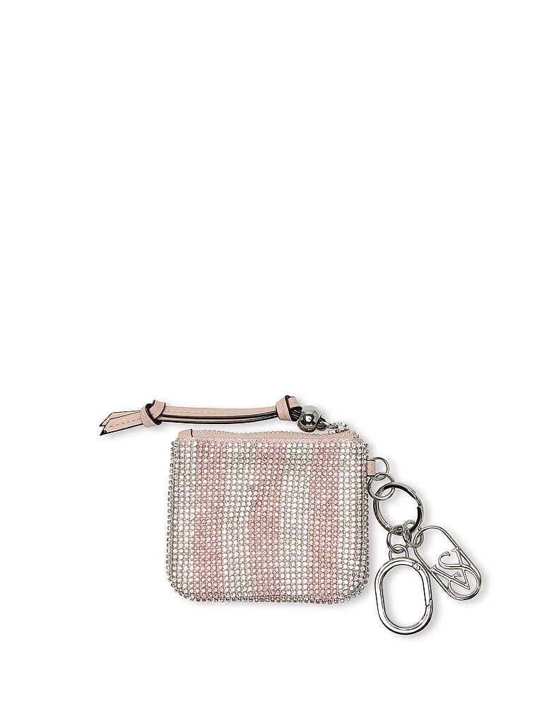 A glittering touch. This pouch keychain features allover crystal embellishments to add a bit of glam wherever you attach it.