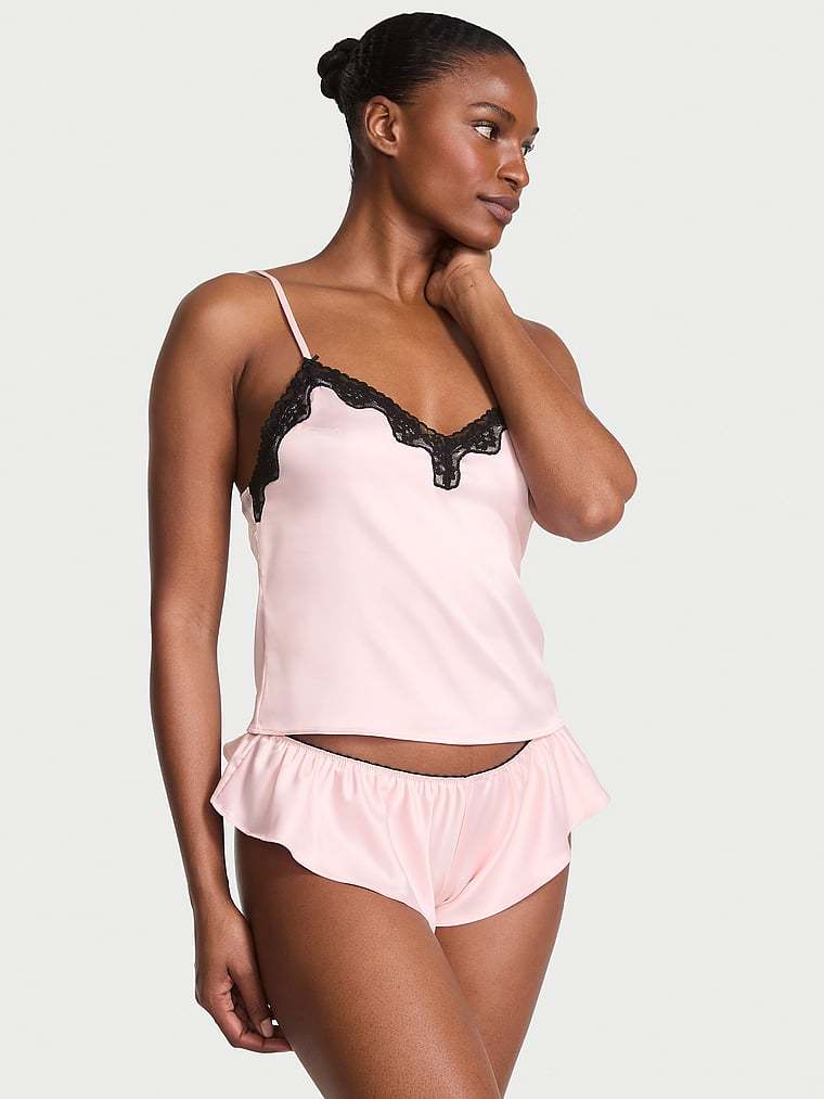 Victoria's Secret Tease Satin Lace-Trim Cami & Flutter Shorts Set