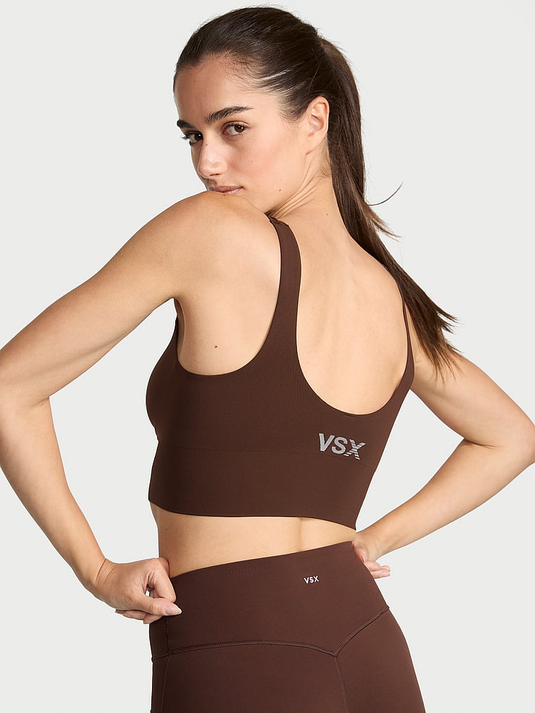 This sleek-and-easy style is a must-have for your everyday rotation. Our premium seamless fabric offers a totally smooth look and feel, while the longline band provides flattering coverage for a crop top effect—so you can skip the shirt while working out, if you want.